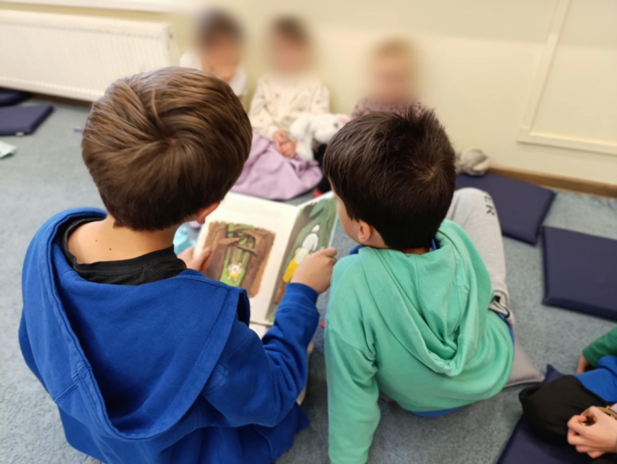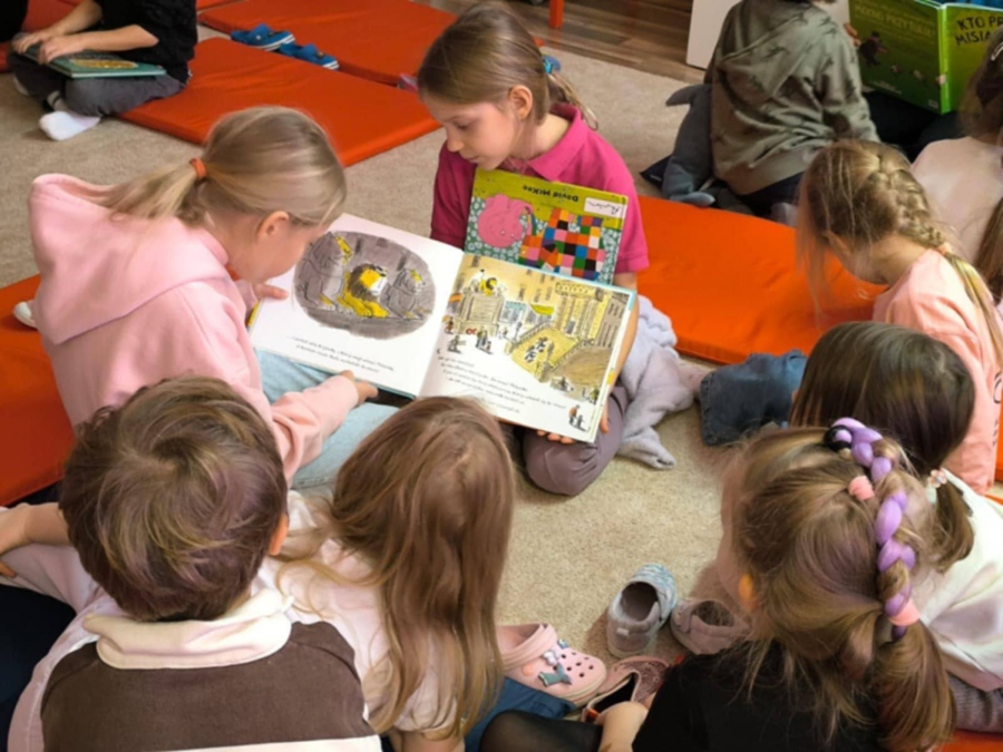 Klasa 3 odwiedziła dzisiaj Kangurowe Przedszkole i spędziła miły czas z młodszymi kolegami, czytając im podczas odpoczynku.